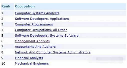 再來看一組數據,Myvisajobs.com每年都會發布關于H1B申請人的各項數據,其中包括按職業、行業和地理位置多種分類的排名。我這里給大家貼出來的是按職業分類,也就是大概可以對應專業。