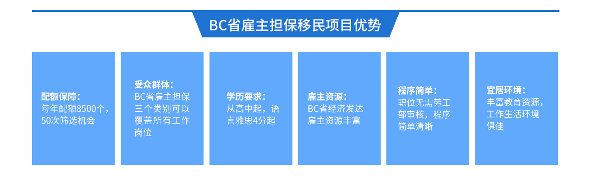 BC省省提名移民項目(BC Provincial Nominee Program, BC PNP)作為經(jīng)濟類移民項目,為促進本省經(jīng)濟發(fā)展的外國工人和有經(jīng)驗的企業(yè)家提供了移民途徑。獲得BC省省提名的申請人和配偶子女有資格向聯(lián)邦提交永居簽證申請,獲得楓葉卡。