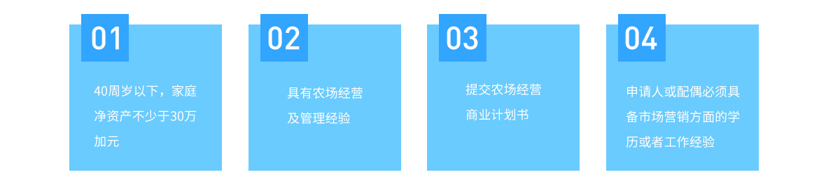 ![]() —— 一般農(nóng)場主申請條件 —— ![]() —— 年輕農(nóng)場主申請條件 —— ![]() —— 投資方式 —— ![]() 加中寰球移民-專業(yè)移民服務(wù), 歡迎您來電咨詢400-660-1806 ![]() |