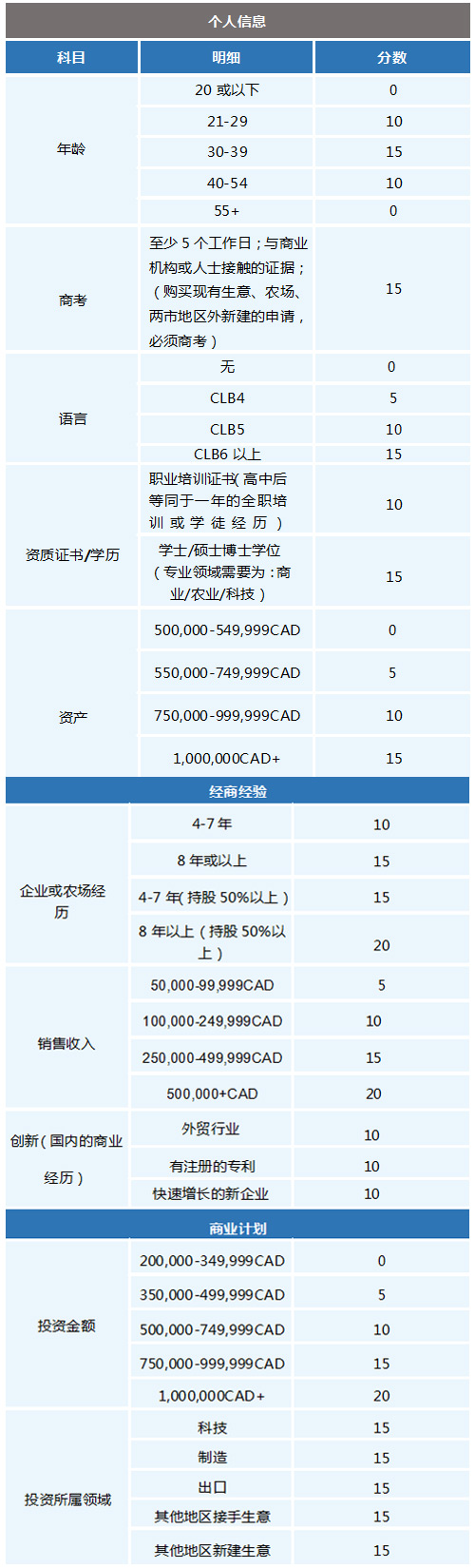2015年3月,薩省企業家移民項目執行新政,以工簽制取代一步到位獲得楓葉卡的移民方式,同時正式引入 EOI打分系統,該系統根據申請人的綜合評分甄選申請人,被選中的申請人將先取得工作簽證,在登陸薩省后的12個月內完成創業和投資,經營 6個月后可申請薩省省提名資格并獲得加拿大永久居民身份。