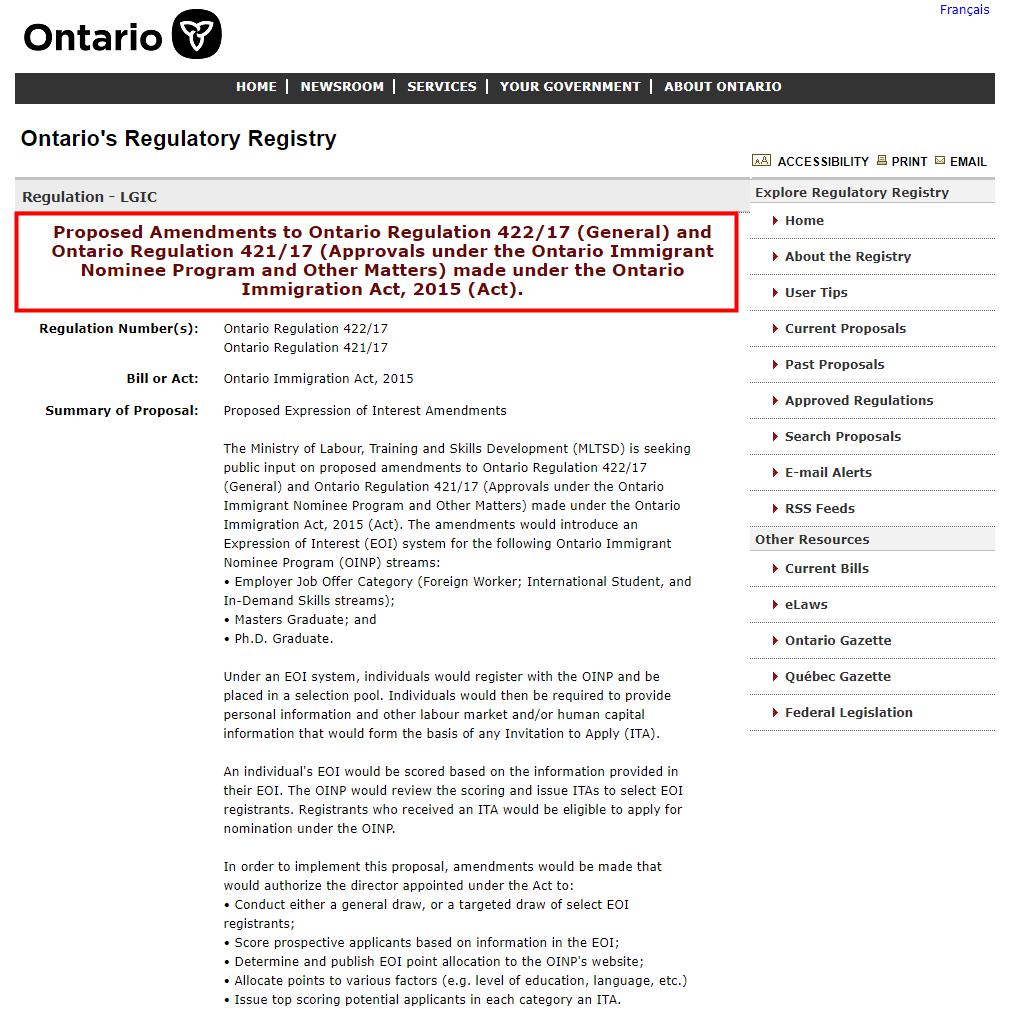不僅加拿大聯邦移民部采取了EOI評分系統,加拿大一些省提名項目也采取了EOI評分系統,作為每年接納整個加拿大一半左右新移民的移民大省,安省也算是與時俱進,跟上了時代的步伐。