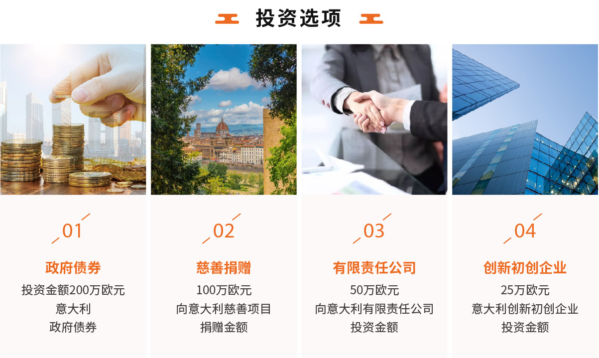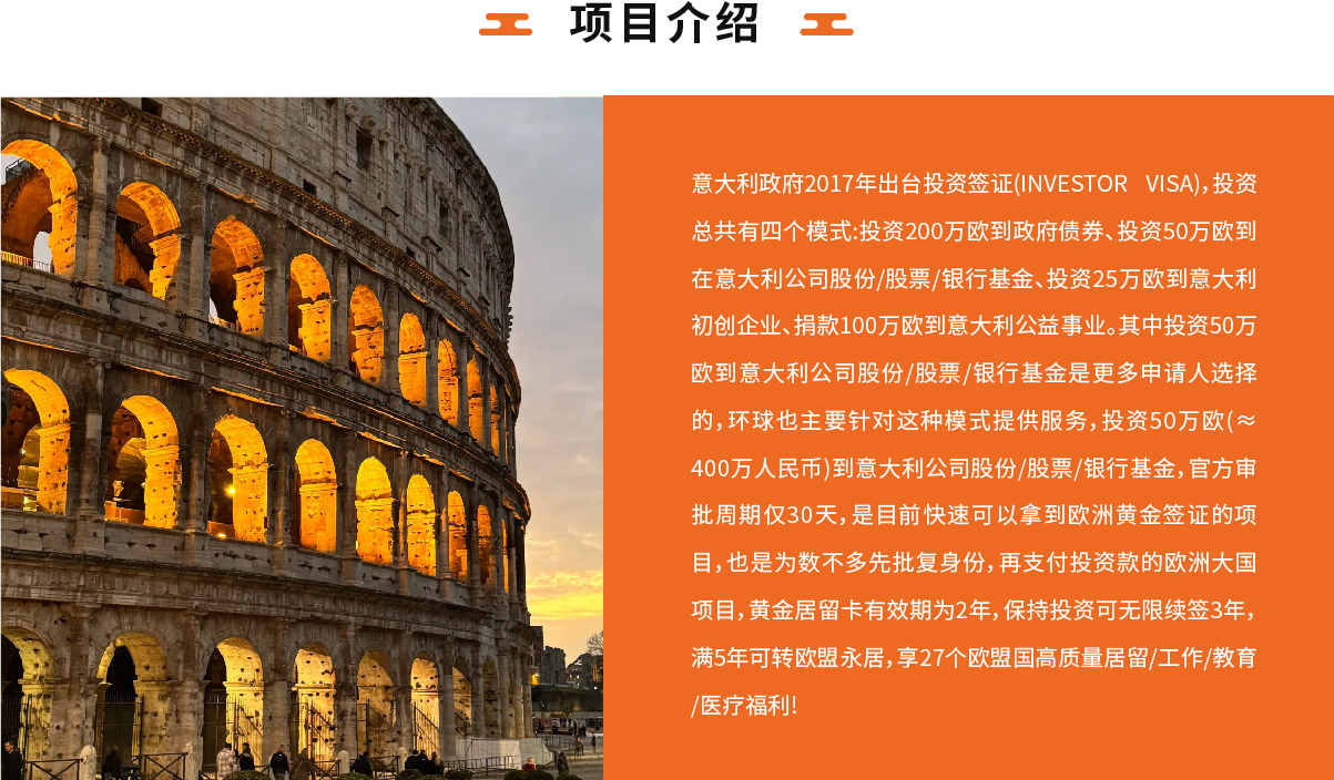 項目介紹 項目優勢 申請條件 投資選項 成功案例 申請流程 意大利優勢 文案團隊