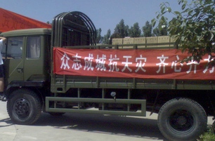 公司員工正在為災區運送救援物資