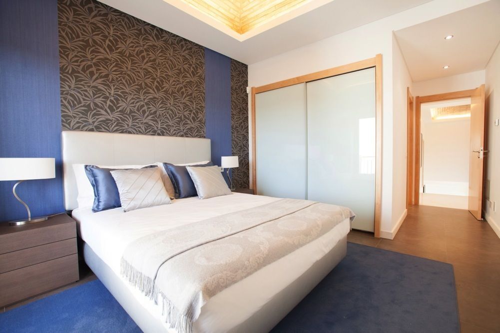 葡萄牙移民買房就可以移民,那葡萄牙的房子到底是什么樣的呢?葡萄牙現(xiàn)代風(fēng)格的臥室,喜歡以藍(lán)白調(diào)示人,優(yōu)雅的藍(lán)白調(diào)給人帶來舒適放松的愉悅氛圍。整間臥室采用淡藍(lán)色裝扮,給人一種暢游在藍(lán)天的感覺。天藍(lán)色風(fēng)格的床,搭配簡單石膏板搭成的電視背景墻,兩邊對(duì)稱式的小壁燈,配合白色石膏線條吊頂,帶來優(yōu)雅干凈的風(fēng)味,簡單而不單調(diào),給人以放松舒適之感。