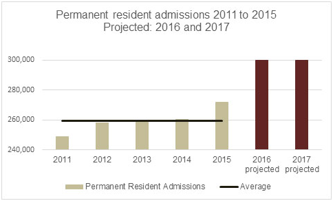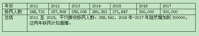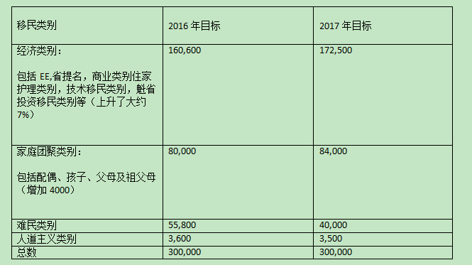 1、2017年總移民數將仍然保持在30萬,其中經濟類移民將占大比例。