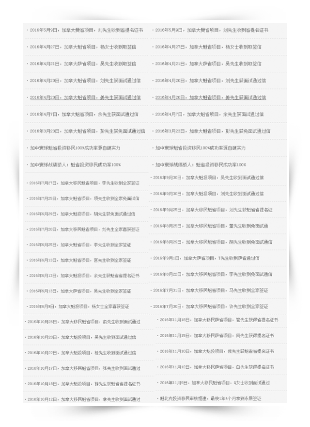 加中寰球魁省投資移民成功案例又創歷史新高,總體成功率達到99%,免面試通過的達到60%左右。