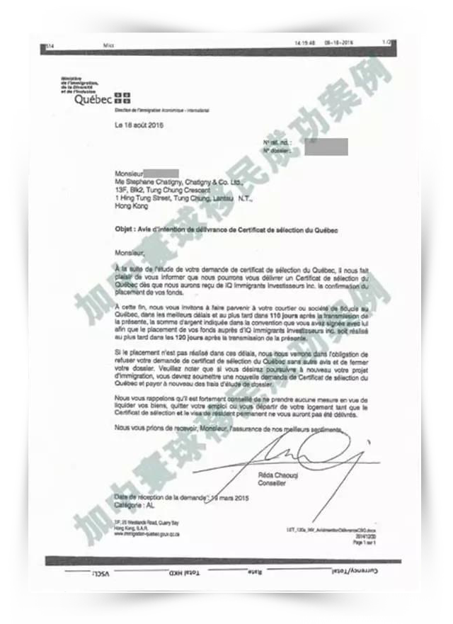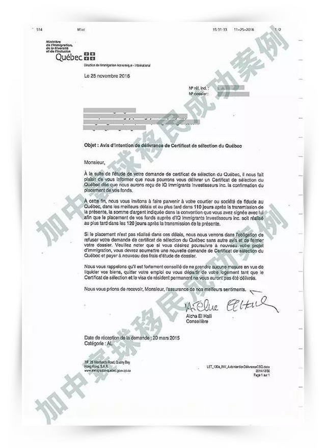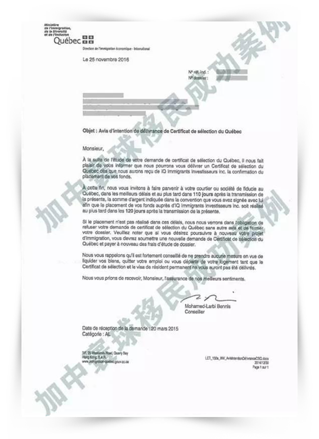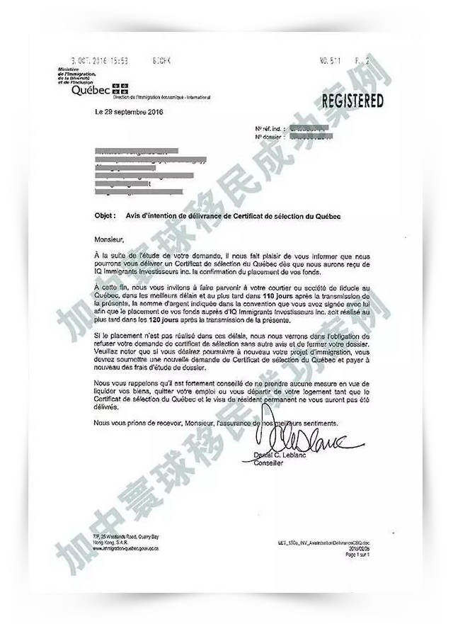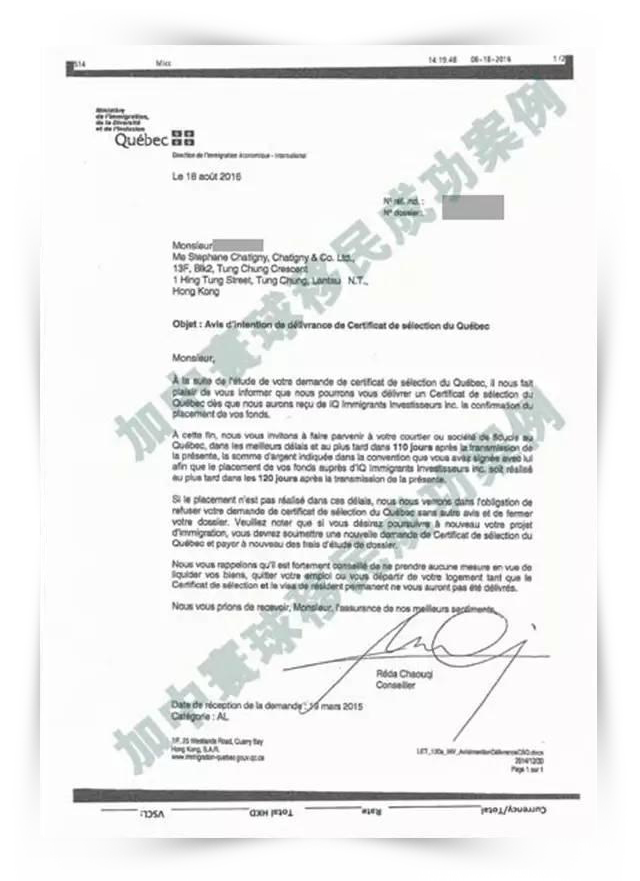 魁北克投資移民客戶L先生,L先生是企業主,一個從簽約到成功拿到簽證,沒有來過加中寰球公司的成功客戶。從遞交魁省申請到全部流程走完(拿到移民簽證)只用了1年零3個月時間!