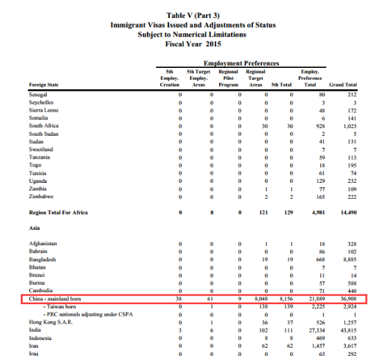 最近DOS(美國國務院)簽證辦公室發布了2015財年的EB-5簽證的統計報告(2014年10月1日至2015年9月30日止,其中包括使領館發放的數量以及美國本土轉換身份者的數量總計)。