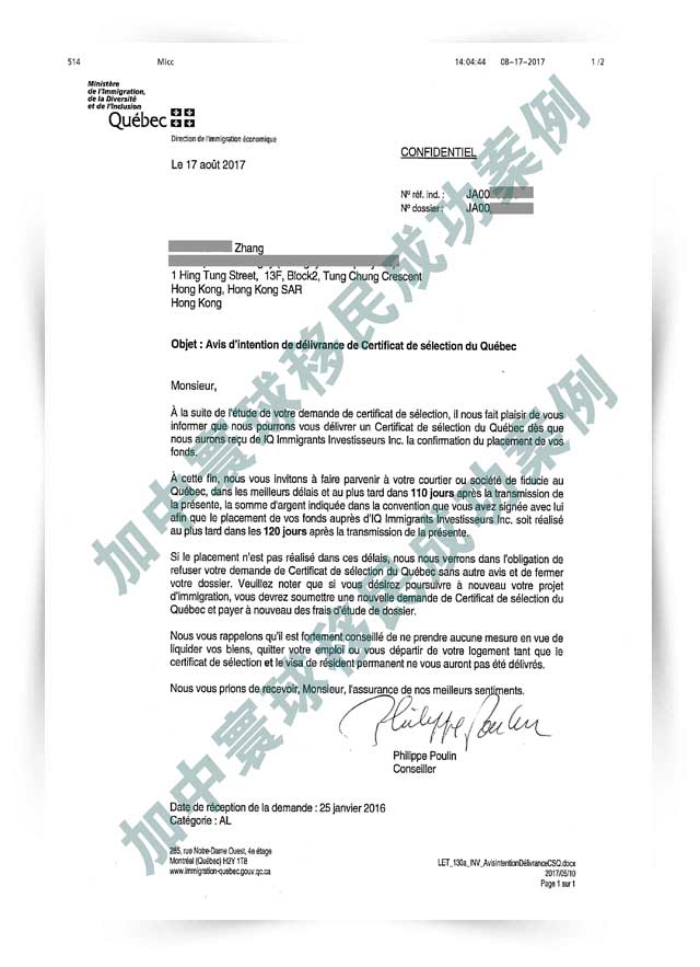 11月24日,加中寰球有一批成功案例來襲,四客戶同一天收到魁省CSQ!具體案例如下: