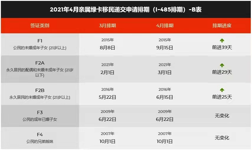 之前只有表A,當排期的日期前進到了申請人的優(yōu)先日之后,申請人才可以遞交綠卡申請的表格,也就是移民的最后一步。