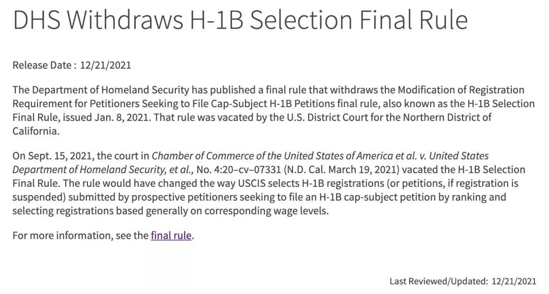 5. 澄清如果就業發生重大變化,包括新的工作地點,必須提交修正或新的H-1B簽證申請的要求