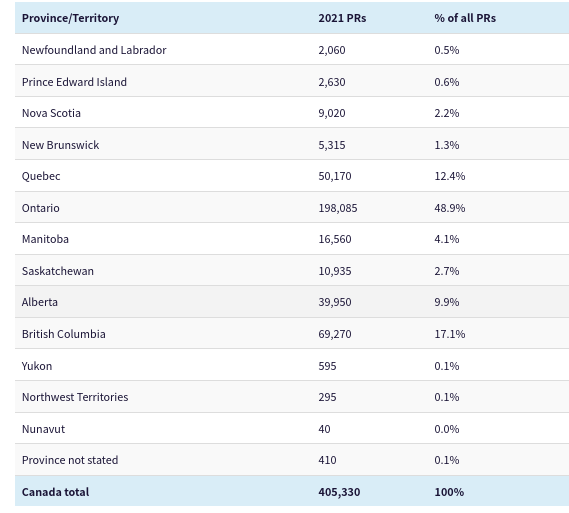 此外,在這些去年成為加拿大永久居民的人中,約有49%來到安省,比疫情前(2019年)的約45%比例有所提高。17%落戶BC省,12%去了魁省。