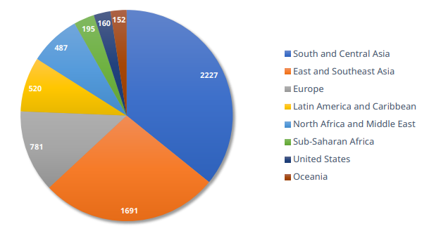 排在前五名的新移民來源國家分別是:印度、中國、伊朗、巴西和英國。