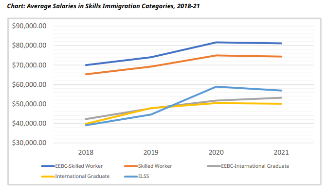通過不同項目來到BC省的新移民薪資水平也出現(xiàn)了較大差異。