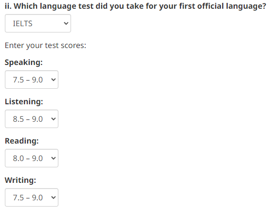 圖源:IRCC 如果是研究生畢業的話:7.5,8.5,8.0,7.5,語言成績的滿分,則達到501分。