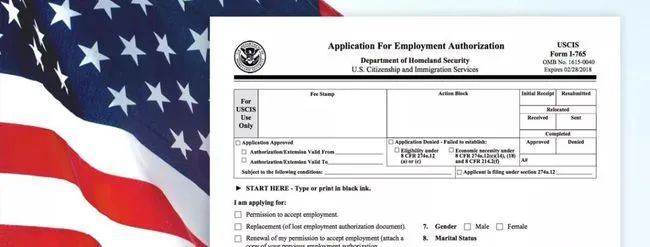 2) I-765表格(工卡,在身份調整期間,可以合法工作)