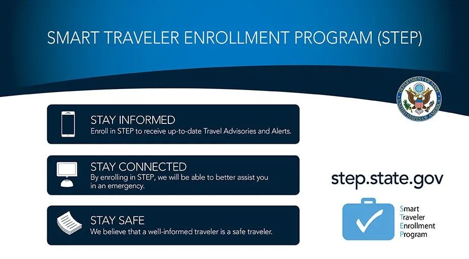 使團(tuán)使用智行者登記計(jì)劃(STEP)向社區(qū)中的美國(guó)公民發(fā)送信息與更新。欲收到這些信息,強(qiáng)烈鼓勵(lì)美國(guó)公民在STEPhttps://step.state.gov/上進(jìn)行注冊(cè)登記。
