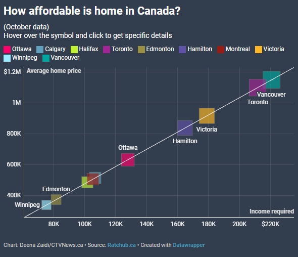 近日,抵押貸款經紀公司Ratehub.ca分析了加拿大10大主要城市的房價,公布了加拿大人在這些主要城市中買房所需的最低年收入。