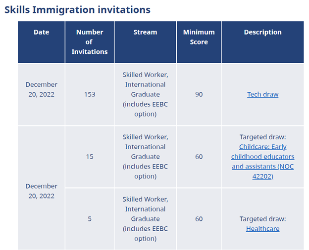 圣誕來臨之際,BC PNP于12月20日進(jìn)行了技術(shù)類移民的抽分邀請。此次僅針對科技類及醫(yī)護(hù)早教類別進(jìn)行了定向邀請。