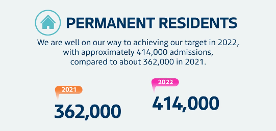 在永久居民PR方面,2022年前11個(gè)月,加拿大已經(jīng)迎來(lái)414,000名新移民,而去年同期是362,000名。