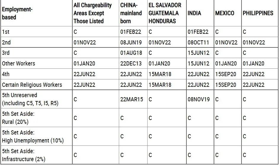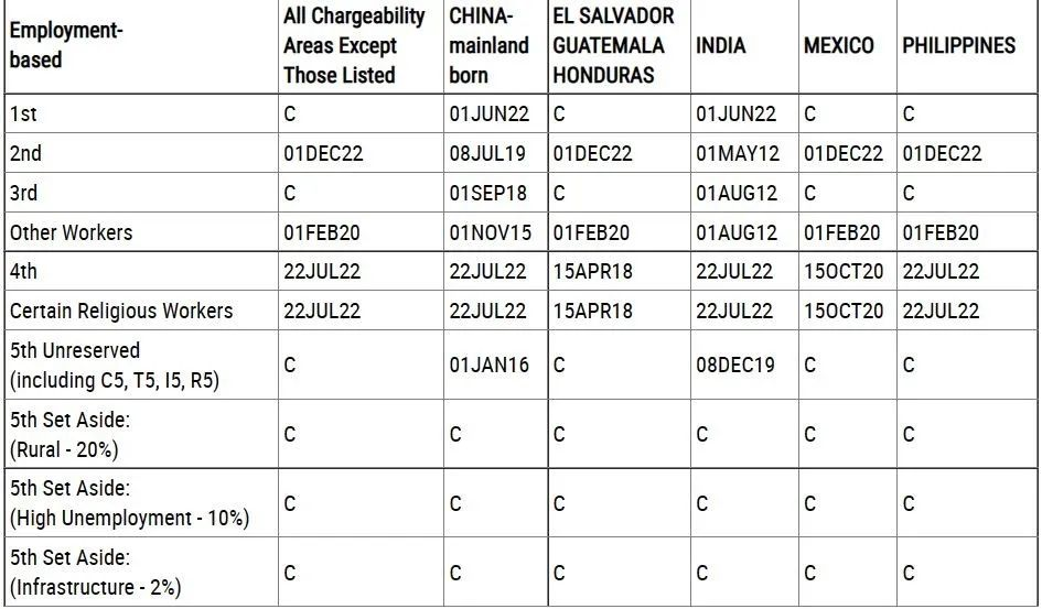 ·EB-1(杰出人才)出現排期,為2022年6月1日;