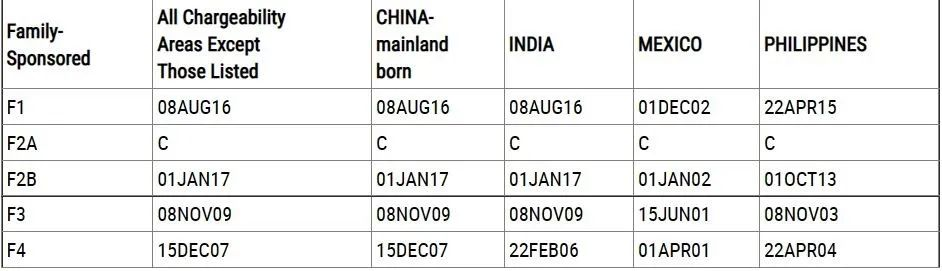 ·F2B類(永久居民的成年未婚子女<21歲及以上>)原地踏步;
