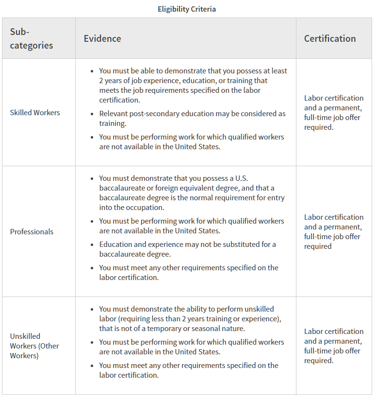 按照美國移民局的定義, EB-3具體分為ABC三類: