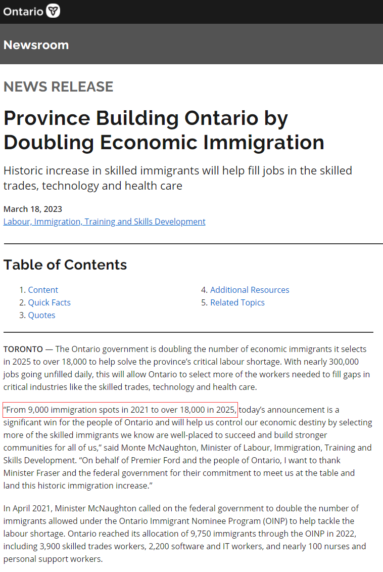 根據新協議,安省PNP配額將從2022年的9,750名增加到2023年的16,500名,2024年超過17,000,2025年超過18,000名,以幫助該省解決嚴重的勞動力短缺問題。
