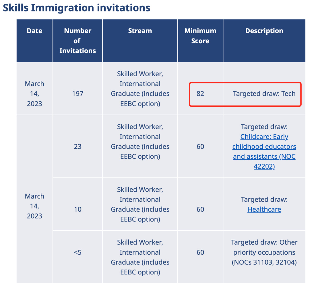 現(xiàn)如今BC省常規(guī)通道持續(xù)居高不下的狀態(tài),如果背景履歷在BC Tech 35個(gè)崗位清單中,簡(jiǎn)直太幸運(yùn)了!3月14日,BC Tech類邀請(qǐng)了197人,最低分?jǐn)?shù)線82分。