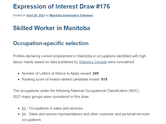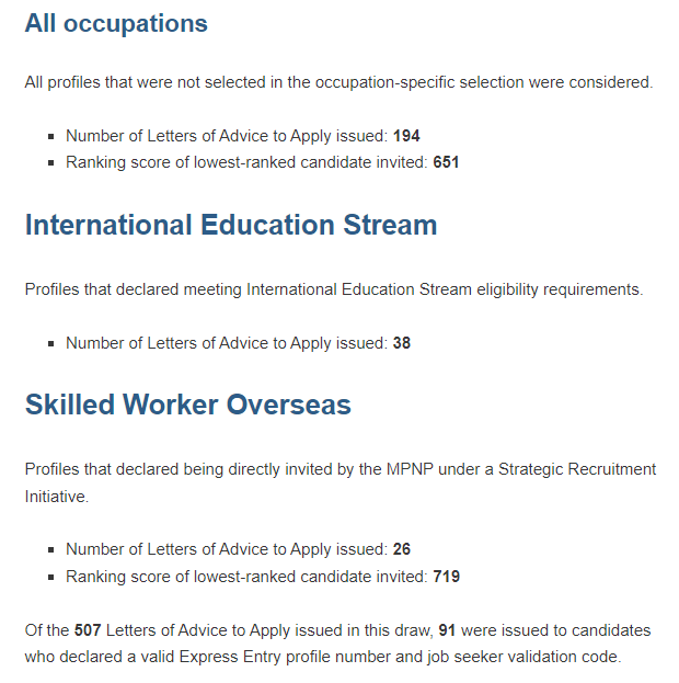 加拿大時間4月20日,曼尼托巴省省提名(MPNP)發出了本月新一輪邀請。本輪共邀507人,獲邀情況如下: